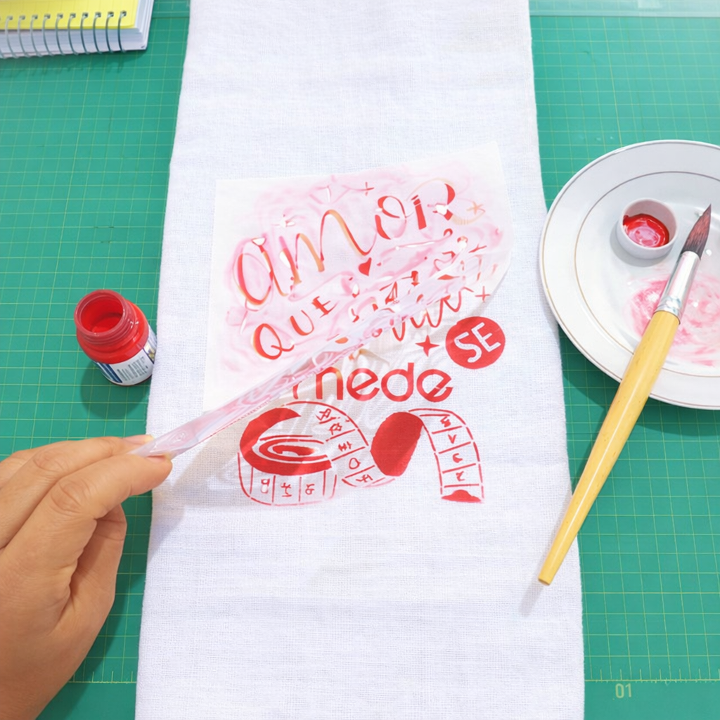 Além disso, o tecido transforma o trabalho em algo útil: uma ecobag, um pano, uma fronha ou uma toalhinha. Assim, a criança percebe que criou algo que pode ser usado no dia a dia.