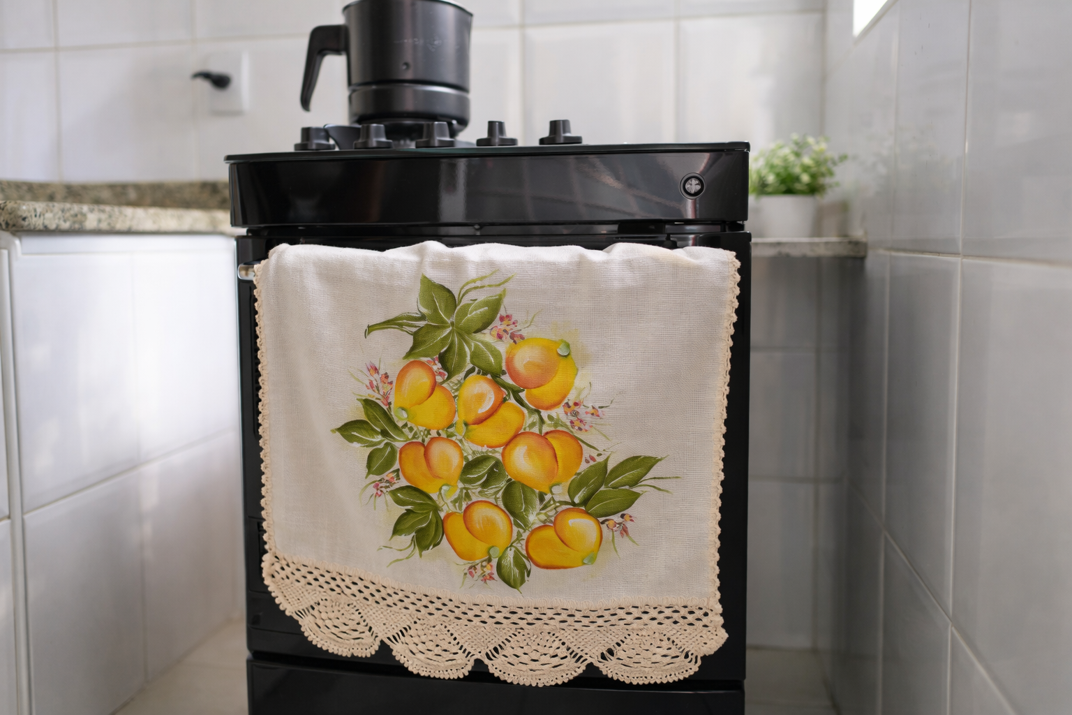 • Bordado na decoração: como valorizar a cozinha com uma toalha de bandeja em hardanger