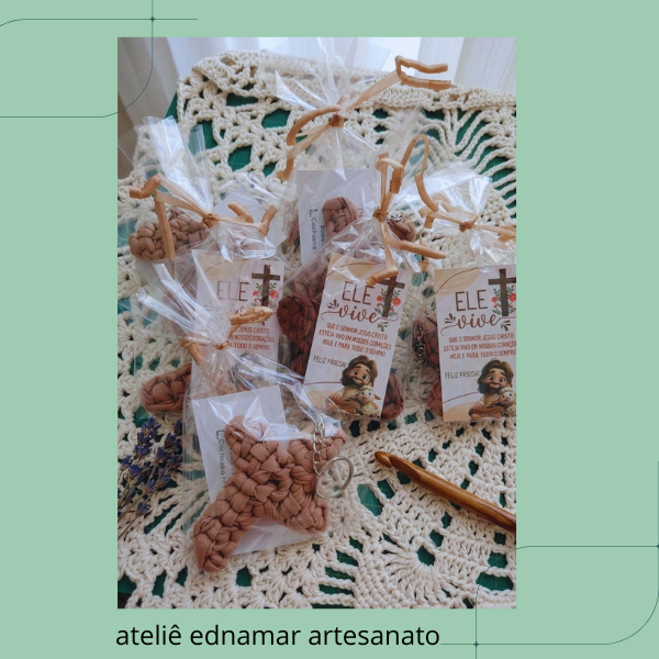 - Datas Religiosas (Páscoa, Crisma, Primeira Comunhão): Itens como nossa Cruz de fio de malha, mini terços em crochê ou toalhas de mão bordadas são perfeitos para paróquias e famílias católicas.