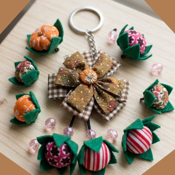 Para movimentar esse capital, hoje quero partilhar com vocês esses Chaveiros de Fuxico e Retalhos. Eles são peças que vendem o ano inteiro e servem como uma excelente porta de entrada para novos clientes.