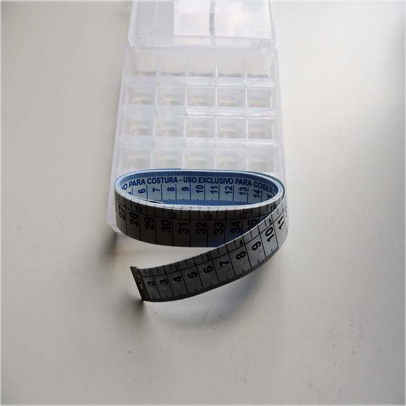 Outra peça indispensável no ambiente da costura, pois todas as peças tem medidas e ter uma fita métrica de fácil acesso;