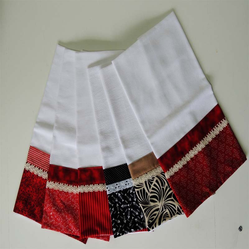Sim essa é a proposta destes panos, um barrado que pode ser feito utilizando retalhos de tecidos, sobras de rendas, sianinhas e outras passamanarias e muita criatividade;
